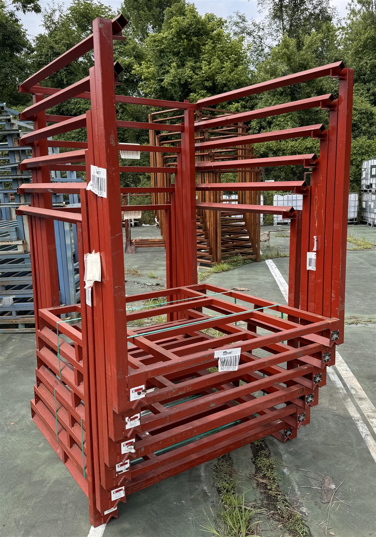 Portable Stack Rack Nesting Pallet Stacker Rack Warehouse Red Color 2,000 Lb. Capacity 2,000 lb. Capacity Width Outside to Outside - 52 1/2 in. Width Inside to Inside - 48 1/2 in. Depth Outside to Outside - 50 in. Depth Outside to Inside - 48 in. Height Top to Bottom - 56 1/2 in. Height Top to Ledge - 51 in. Height Inside to Inside - 48 in. Portable with Fork Lift Nests for Short Term Storage When Not In Use Stacker Tier Rack Stackers Portable 1 Rack Per Sale Fits: Common Application Pallet Rack Pallet Racks Stack Rack Stack Racks Nesting Nestable Warehouse Racks Like Nestainer
