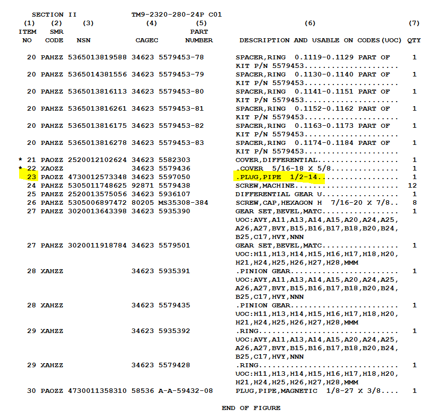 Click Here For Magnetic Drain Plug Differential Housing HMMWV