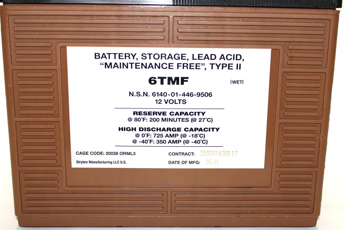 Battery 6TMF 12 Volt Wet Battery M35A2 HMMWV M809 M939 FMTV LMTV Oshkosh
