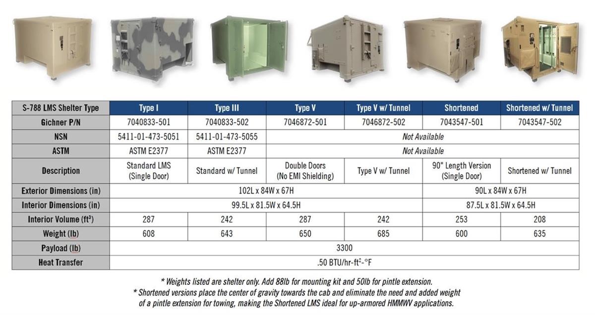 - Lightweight Multipurpose Shelter (LMS) designed for transport on the M1152A1 and the M1152A1 High Mobility Multipurpose Wheeled Vehicle (HMMWV).