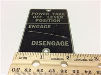 PTO Engage/Disengage Lever Data Plate PN: 7368571