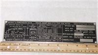 M109 2 1/2 Ton Van Truck Weight and Dimension Data Plate, 6x6, W/W.
