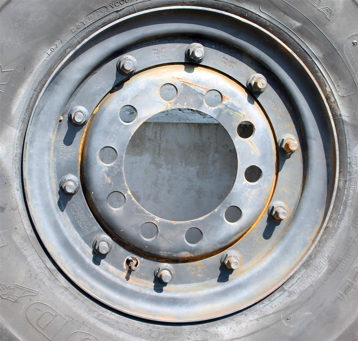 Click Here For 14.00R20 Michelin XZL Tire 70% or better Mounted on 10 Hole 10 Stud Wheel Rim