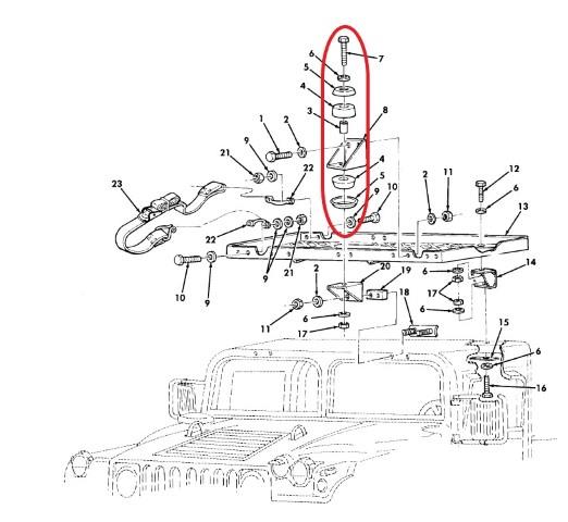 - Includes: 1 Bolt 5306-01-360-1129, 1 Washer 5310-00-080-6004, 2 Snubber Plates 2540-01-192-5949, 2 Mounts 5340-01-211-0838, 1 Sleeve 5365-01-216-0364