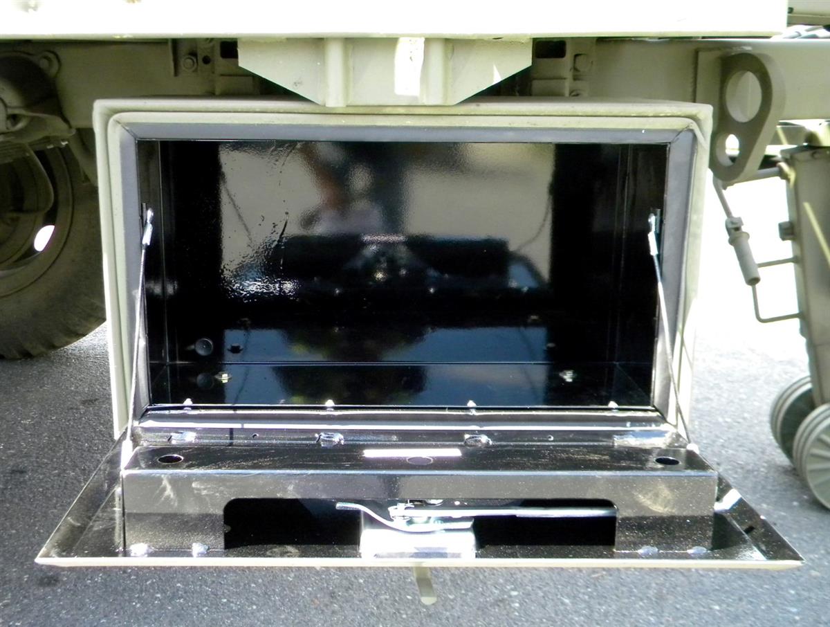 Custom-mounted new aftermarket tool boxes. 2 Gerry cans mounted on front.